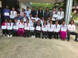 Students receiving medal and certificates in futsal tournament